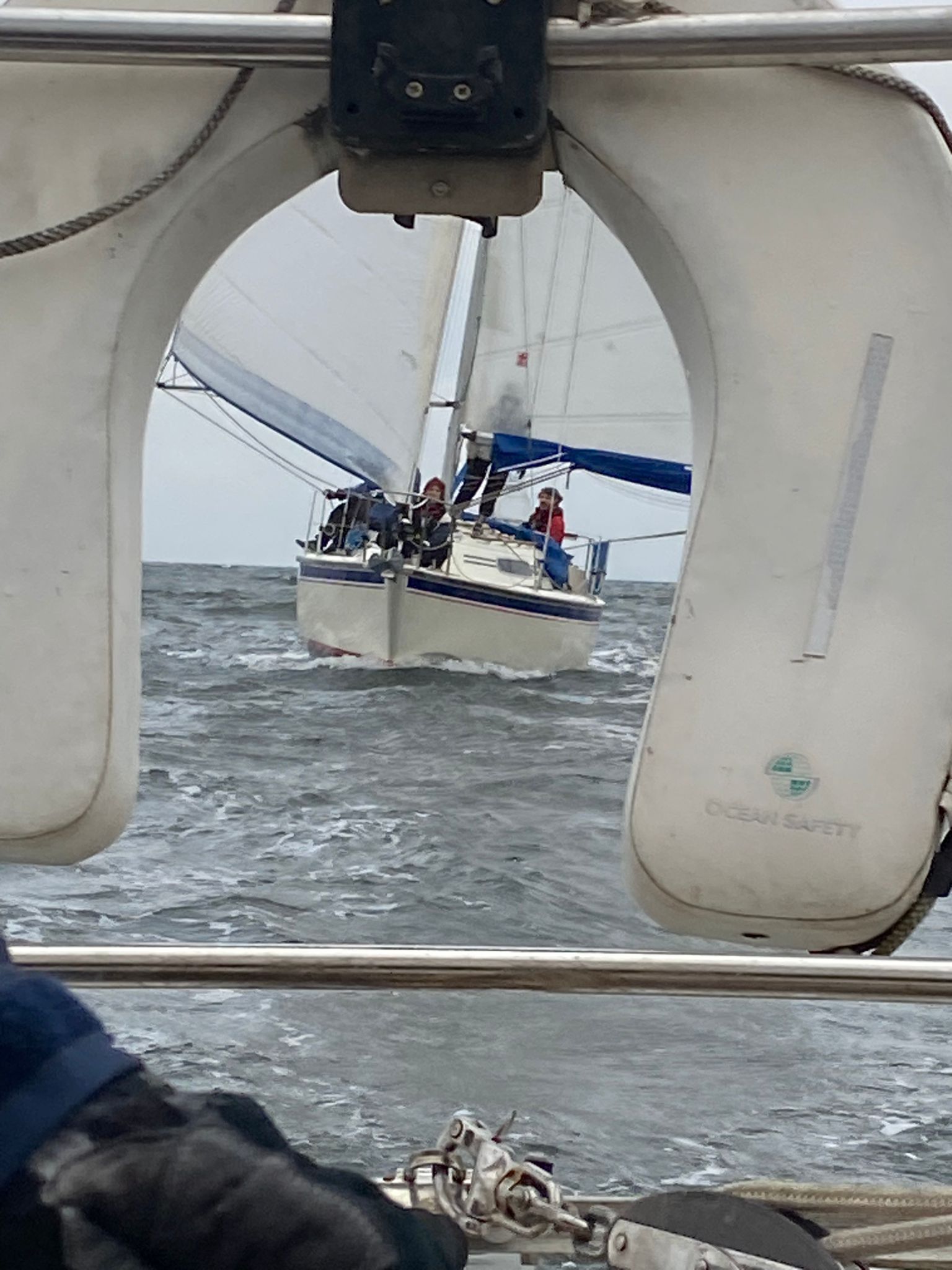 A short sloppy swell and a perfect 15 knots of breeze from the north east greeted our competitors, just a shame that after such a technicolour week of sunshine that everything had turned monochrome. The sky was grey, the sea was grey, winter clothes were donned and spotting the marks of the course ended up being the crew’s biggest challenge.