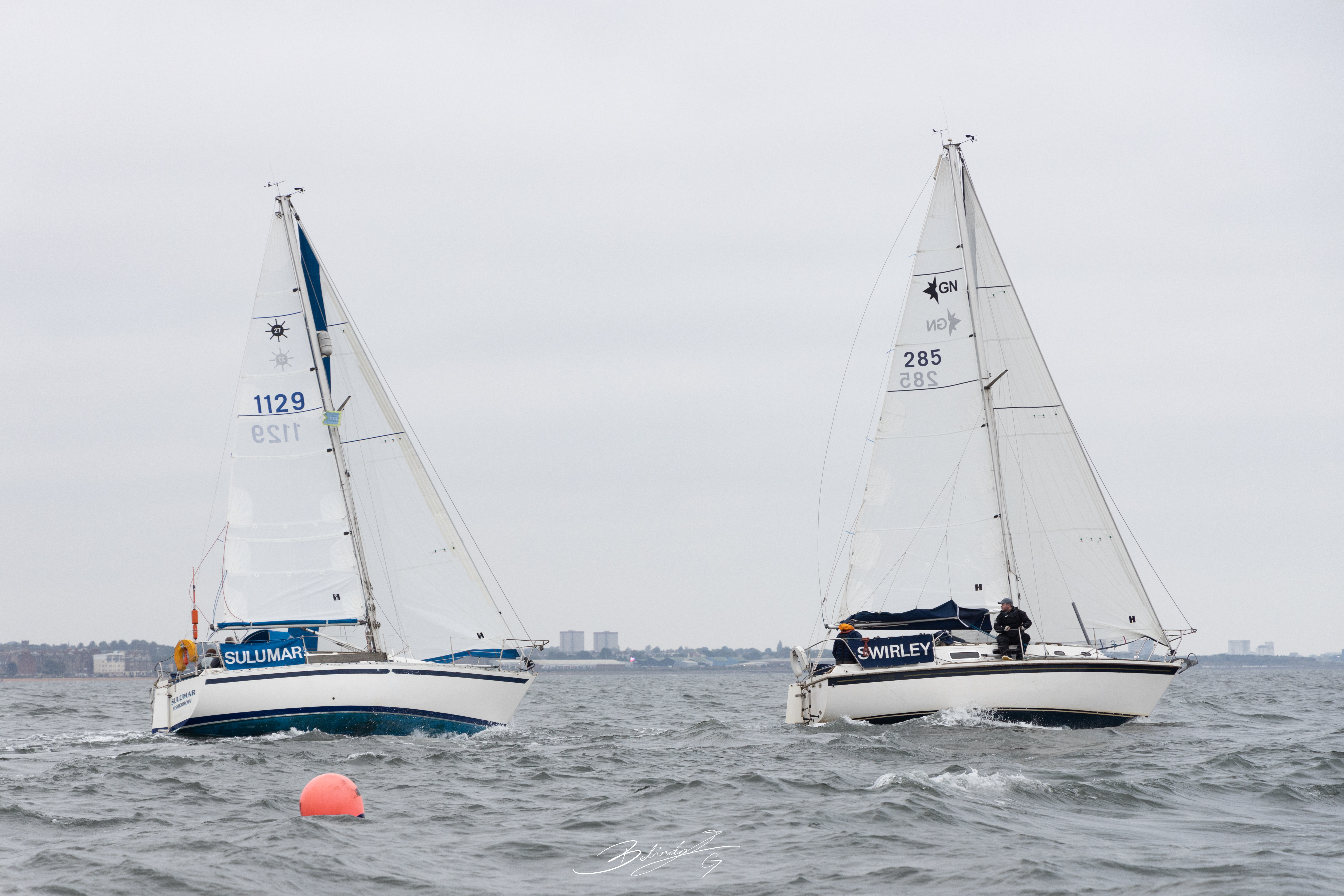 After a clean start for all three boats, Swirley found her legs almost immediately stretching out a commanding lead, keeping her nose clean and mistakes to a minimum, she won the final race by a clear 2 minutes, Artemis was lying second on the water but the big question… was she far enough ahead of Sulumar to clinch the needed second place on handicap in order to win overall? The two boats had been close on the water throughout the race, Sulumar’s pursuit proving impossible to shake off. After finishing, all eyes on Artemis were on their watches while waiting to see how close behind Sulumar would finish, some quick mental arithmetic suggested that if the gap was longer than around 54 seconds they were in the clear. The finishing hooter sounded at 50 seconds, but that might have been for a Kinsman finishing between the two boats, Sulumar finished closely afterwards, so close that we would have to wait for the times to be fed through the handicap program to be sure.